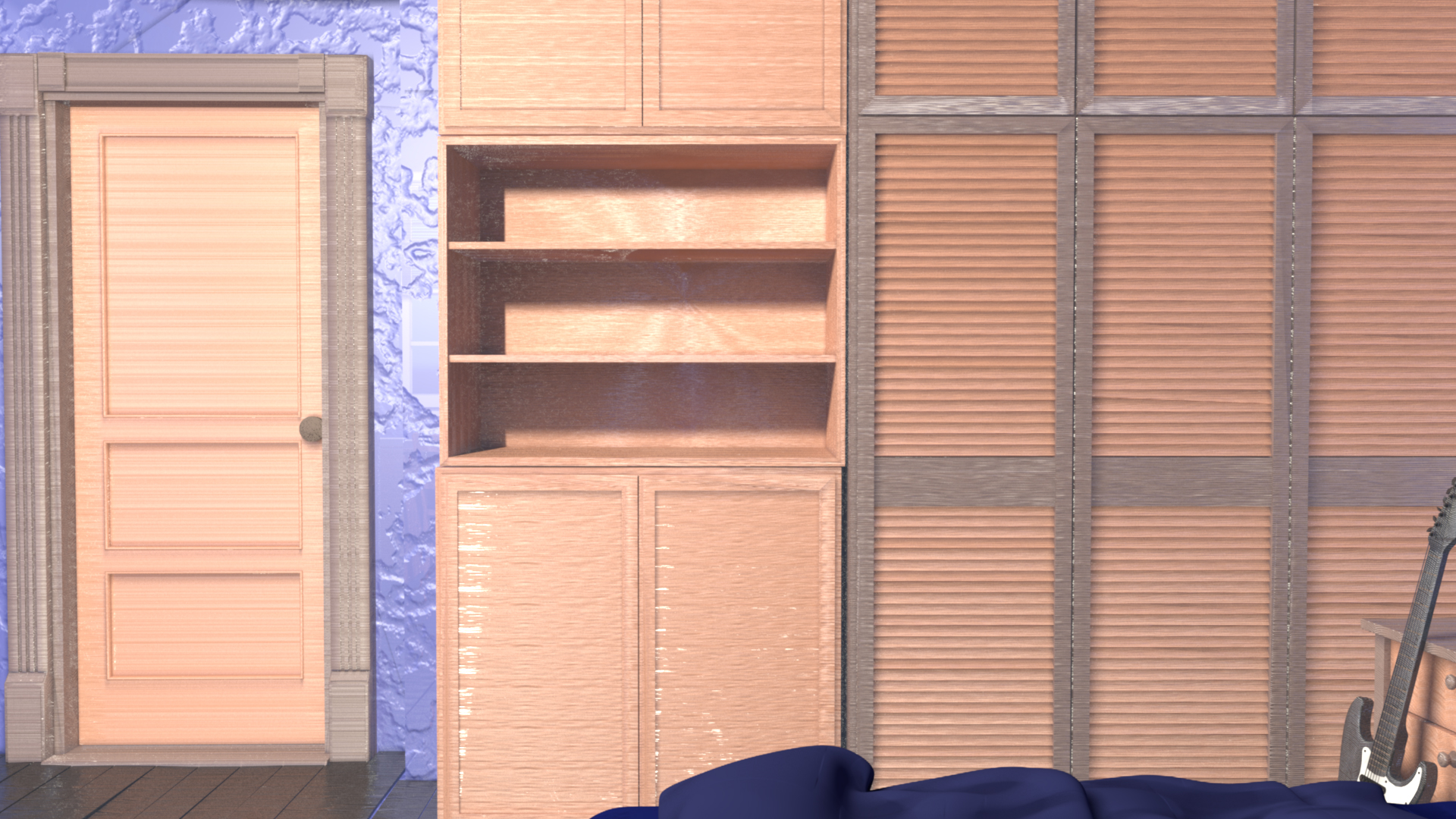 Bedroom 3D Texturing This is a 3D bedroom scene that I did the texturing and lighting for in Autodesk Maya. Bedroom – 1 Bedroom – 2 Bedroom – 3 Bedroom – 4 Bedroom – 5 Bedroom – 6 Bedroom – 7 Bedroom – 8 Bedroom – 9 Bedroom – 10 Bedroom – 11 Bedroom – 12